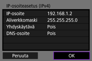 Määritä IP-osoiteasetus käsin. Huomaa, että näytetyt kohteet vaihtelevat tiedonsiirtotoiminnon mukaan.