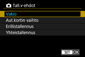 Kun [ Tall.v-ehdot]-asetus on [Erillistallennus]/[Yhteistallennus] tai [
