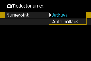 Kansioon tallennetuille stillkuville määritetään tiedostonumero 0001–9999. Voit muuttaa kuvatiedostojen numerointitavan.