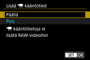 - Kääntötietoja ei lisätä videoihin, kun [