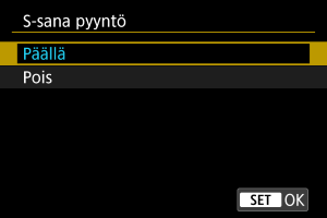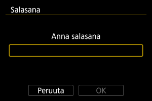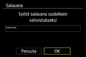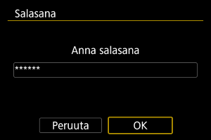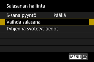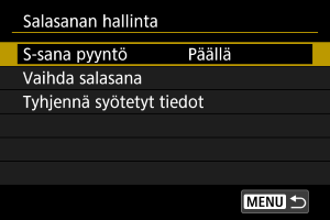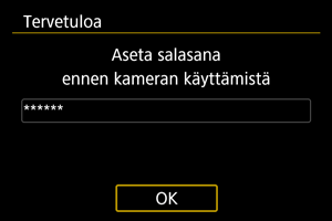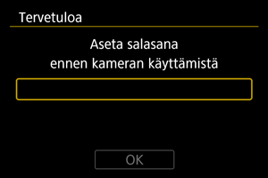 Voit muuttaa salasanan, joka annetaan, kun virtakytkin on asennossa tai kun kamera jatkaa toimintaa automaattisen virrankatkaisun jälkeen.