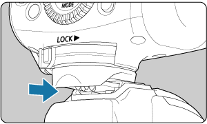 - Tout en appuyant sur le bouton de déverrouillage, faites glisser le taquet de verrouillage à gauche pour retirer le flash Speedlite.