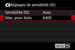 Pour ISO [AUTO], vous pouvez régler la limite de la sensibilité ISO maximale.