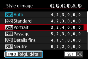 - Sélectionnez le style d'image à ajuster, puis appuyez sur la touche INFO.
