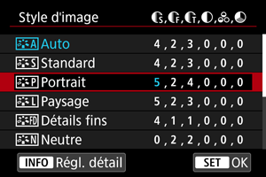 - Avec [Style d'image] sélectionné, appuyez sur