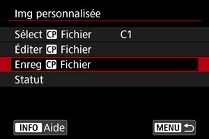 Sur l'écran [Img personnalisée], sélectionnez [Enreg