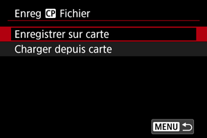 Charge un fichier d'image personnalisée à partir d'une carte. Sélectionnez le fichier à charger, puis sélectionnez [OK].