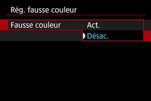 Les fonctions suivantes ne sont pas disponibles lorsque l'appareil photo est réglé pour utiliser les fausses couleurs.