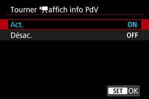 Vous pouvez automatiquement faire pivoter les informations sur l'écran lorsque vous tenez l'appareil photo à la verticale pendant l'enregistrement vidéo.