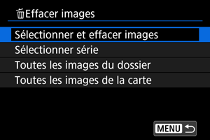 Sélectionnez [Sélectionner et effacer images].