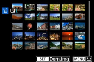 Tout en regardant les images dans l'affichage de l'index, vous pouvez spécifier la première et la dernière image pour une série afin d'effacer toutes les images spécifiées en une seule opération.
