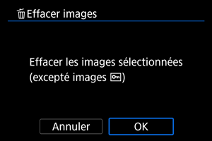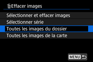 : Effacer images], toutes les images dans le dossier ou sur la carte sont effacées.
