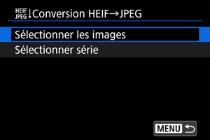 Vous pouvez convertir les images HEIF capturées lors de la prise de vue HDR et les sauvegarder en tant qu'images JPEG.