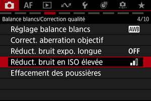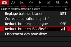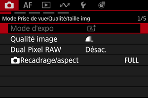 Les éléments de menu grisés ne peuvent pas être réglés. L'élément de menu est grisé si un autre réglage de fonction est prioritaire.