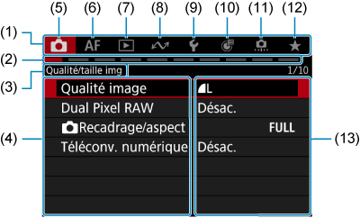 - (13) Réglages de menu