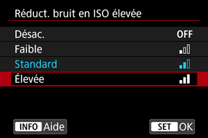 - Le réglage actuel est indiqué en bleu.
