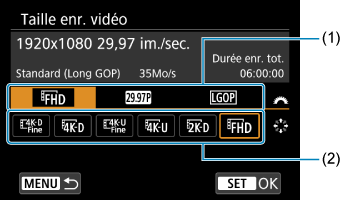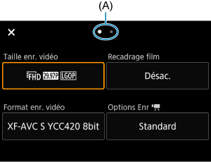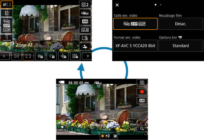 Comme pour la prise de photos, appuyez sur la touche pour accéder à l'écran de contrôle rapide. Chaque pression sur la touche