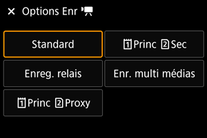: Écran Ctrl rapide] (), mais seul l'écran sélectionné s'affiche si l'une des deux options est sélectionnée ([