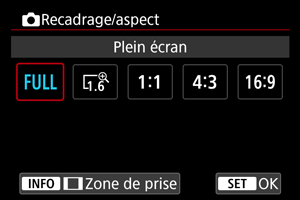 : Ajout d'info. de recadrage] est uniquement disponible lorsque [Plein écran] est réglé.