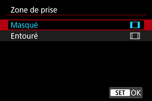 Sélectionnez la manière dont la zone de prise de vue est affichée.