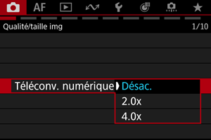 - Non disponible lorsque la qualité d'image RAW est sélectionnée.