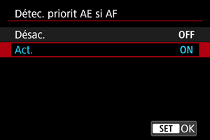 - [Act.] : La mesure est basée sur le collimateur AF ou la zone AF où le sujet a été détecté.