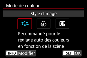 pour sauvegarder le réglage ajusté et revenir à l'écran de sélection du style d'image.