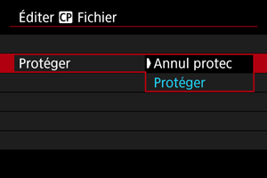 Il est possible de sauvegarder jusqu'à 20 fichiers. [Nouv. fichier] s'affiche lorsque vous sauvegardez le fichier, sauf si plus de 20 fichiers ont déjà été sauvegardés. Si 20 fichiers ont été sauvegardés, ils sont écrasés par les nouveaux fichiers que vous sauvegardez.