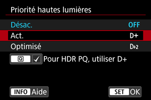 : Priorité hautes lumières] est réglé sur [Désac.] lorsque [