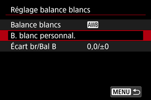] sur une valeur mesurée avec un appareil de mesure de température de couleur en vente dans le commerce, procédez au préalable à des prises de vue de test et réglez le paramètre au besoin afin de compenser la différence entre l'appareil de mesure de température de couleur et l'appareil photo.