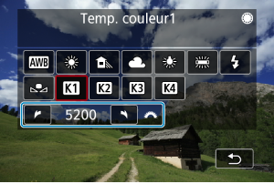 Une valeur peut être réglée pour représenter la température de couleur de la balance des blancs.