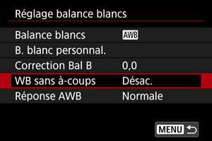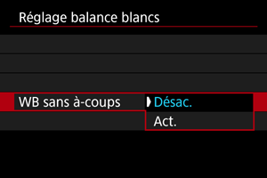 Assure une transition fluide lorsque la balance des blancs est mise à jour après avoir modifié les réglages de la balance des blancs.