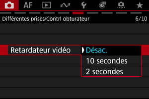 L'enregistrement vidéo peut être démarré par le biais du retardateur.