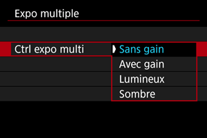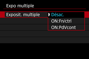 - Pour quitter la prise de vue avec exposition multiple, sélectionnez [Désac.].
