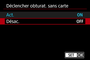 Sélectionnez [: Déclencher obturat. sans carte] ().