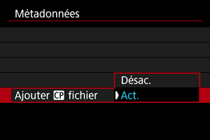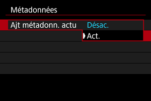 Réglez [Ajt métadonn. actu] sur [Act.].