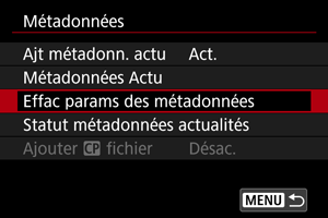 Sélectionnez [Effac params des métadonnées].