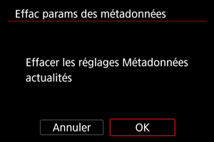 Effacement des réglages des métadonnées