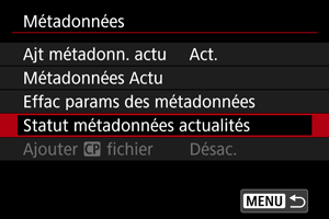 Sélectionnez [Métadonnées Actu].