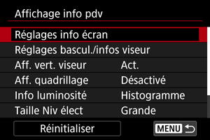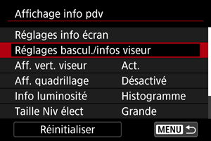 en haut ou en bas pour sélectionner les écrans d'informations à afficher dans le viseur.