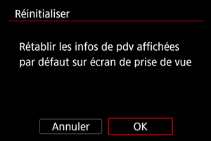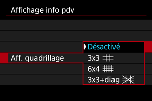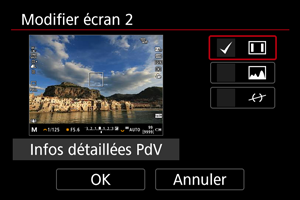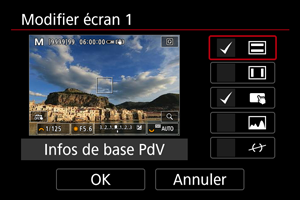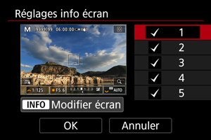 en haut ou en bas pour sélectionner les écrans d'informations à afficher sur l'appareil photo.