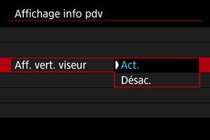 Vous pouvez sélectionner comment afficher les informations du viseur lorsque vous prenez des photos à la verticale.