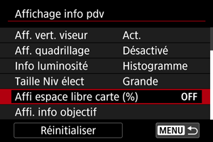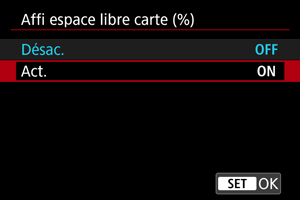 Vous pouvez afficher l'espace libre de la carte sur l'écran.