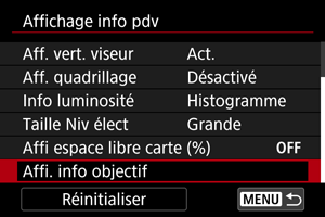 Vous pouvez afficher des informations à propos de l'objectif utilisé.