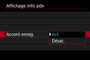 en haut ou en bas pour sélectionner les options à afficher sur l'écran d'informations dans le viseur.