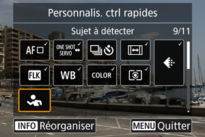 Les éléments de contrôle rapide et leur disposition sont personnalisables.