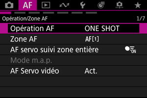 Le mode AF passe automatiquement de [AF One-Shot] à [AF Servo] d'après le statut du sujet pendant que vous enfoncez le déclencheur à mi-course ou photographiez en continu.