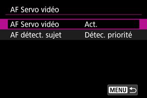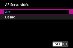 Sélectionnez [AF Servo vidéo].