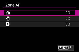 - Sélectionnez la zone AF en appuyant sur la touche