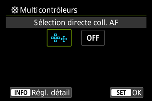 : Personnaliser bout pour PdV], sélectionnez [Sélection directe coll. AF].